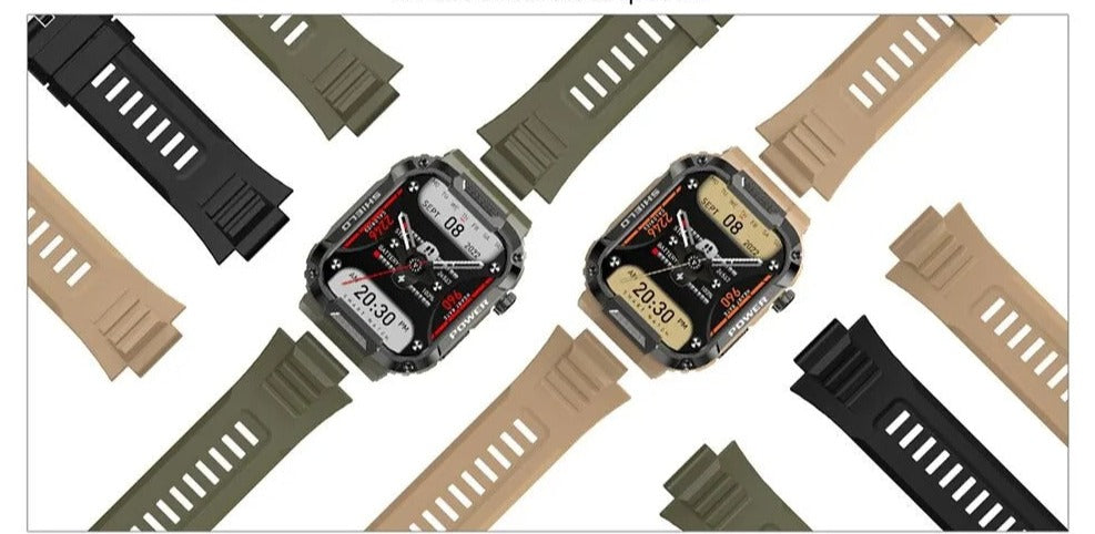 Ne laissez rien vous arrêter avec la montre intelligente militaire étanche IP68. Commandez maintenant pour une expérience de montre connectée ultime! 🕒⌚🎁